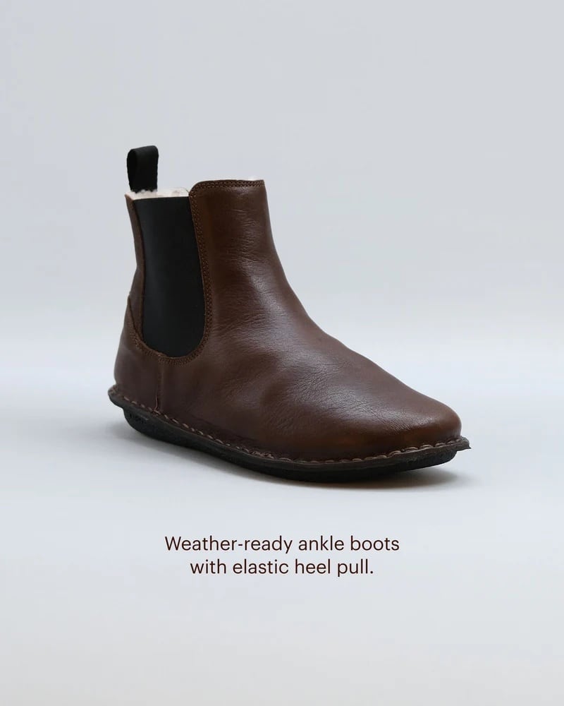 ふかふかで通気性のあるシアリングを裏地に使用したこのアンクル丈のチェルシーブーツは、足元を暖かく保ちながら蒸れを防ぎます。
